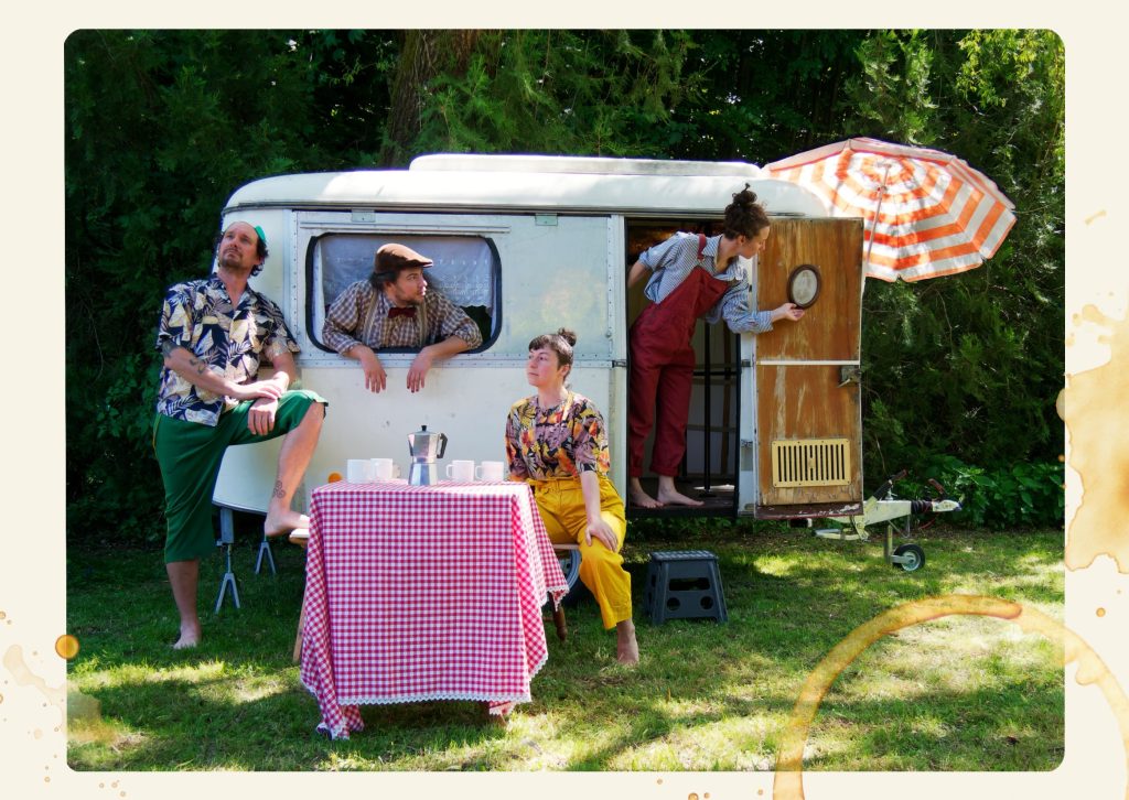 Drei Artist*innen, ein Musiker und ein Wohnwagen – aber das Fahrzeug ist spurlos verschwunden. Während sie sich in der neuen Nachbarschaft einleben, bleibt keine Tasse auf der anderen. Das Ergebnis: eine bunte, absurde Geschichte voller artistischer Überraschungen und mit mitreißender Live-Musik.